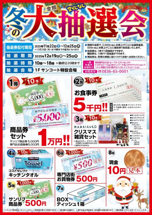 その他、サンリブ商品券や専門店街お買物券が各1,000本など空くじなし!