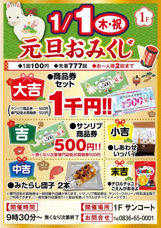 大吉(赤)商品券セット1千円(サンリブ商品券500円+専門店街お買物券500円)