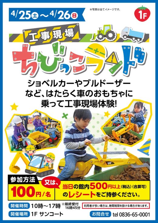 ショベルカーやブルドーザーなど、はたらく車のおもちゃに乗って工事現場体験!