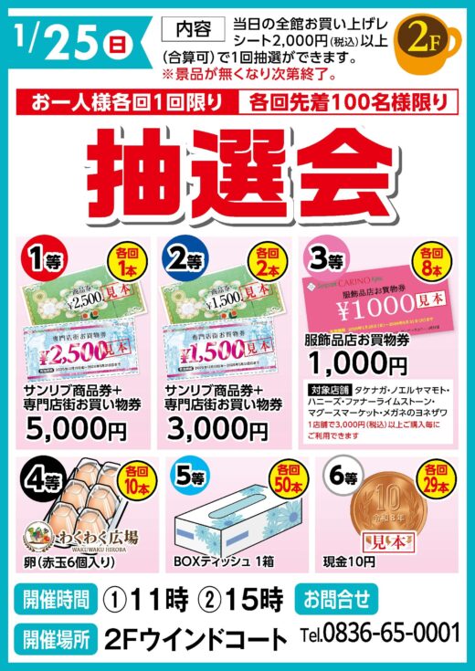 1等赤 サンリブ商品券+専門店街お買物券5,000円×各回1本