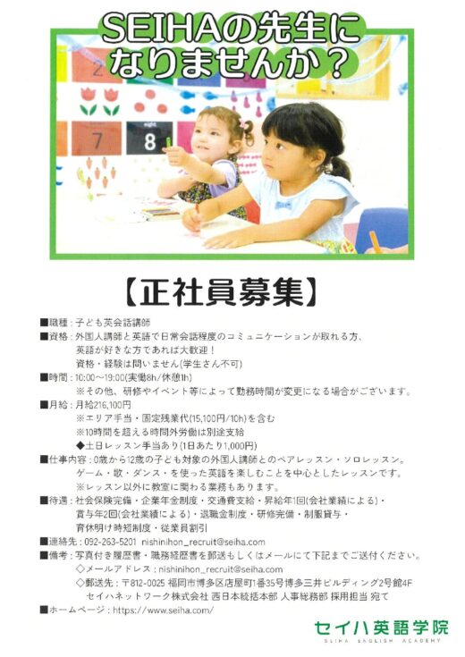 SEIHAの先生になりませんか?【正社員】