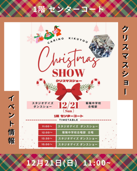 12月21日(日)は、『クリスマスショー』を開催いたします🎄🎶