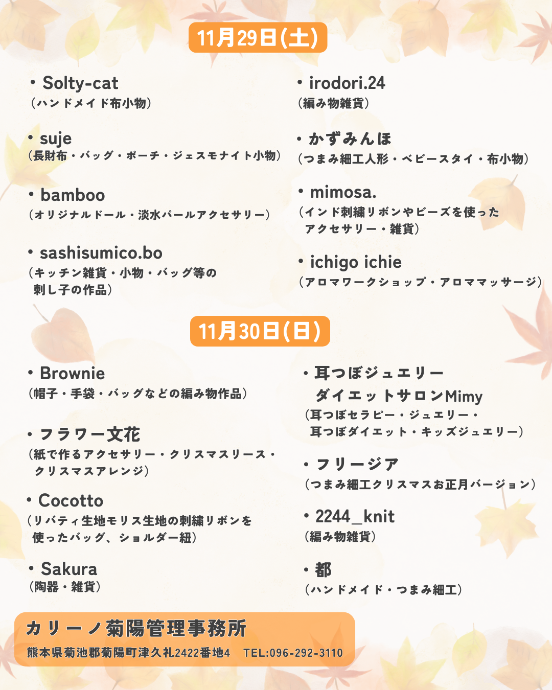 【11/29・30】carino de marche VOL.16 出店者当選発表🎉