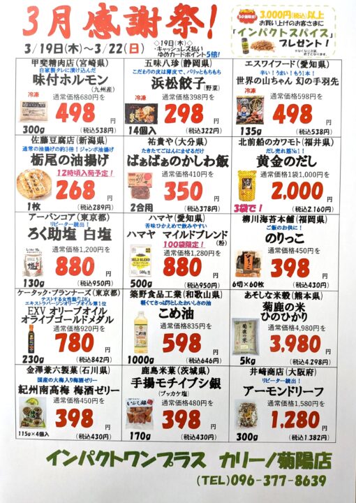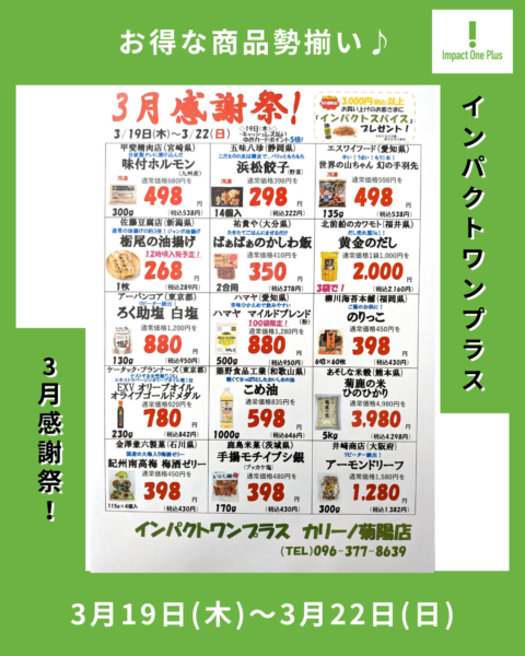 インパクトワンプラスより、『3月感謝祭』のお知らせです✨