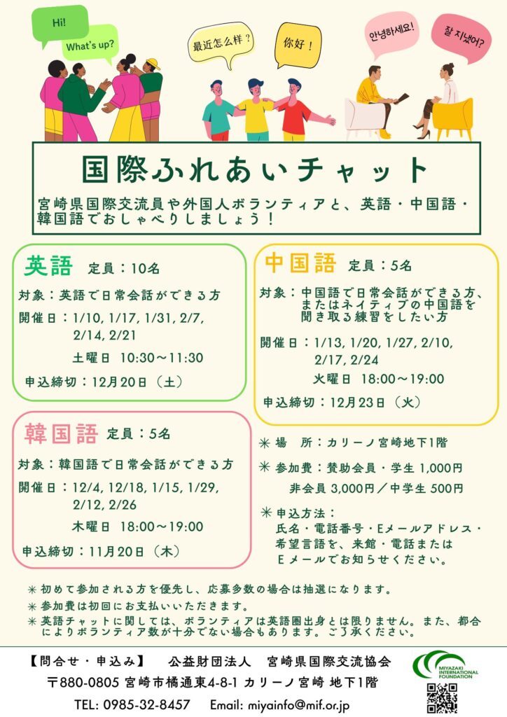 ☆申込み・問合せ:(公財)宮崎県国際交流協会