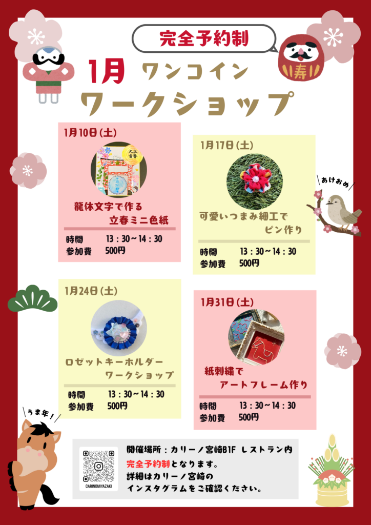 1月も楽しいワンコインワークショップが盛りだくさん😆