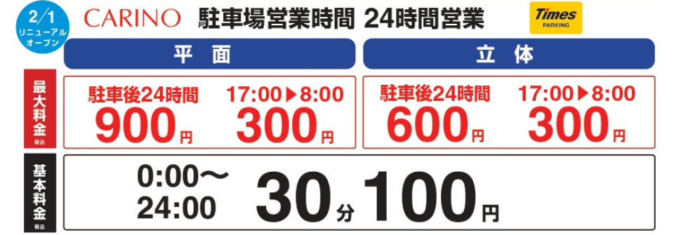 カリーノ駐車場のご利用は、当館内お買い物をされますとお買上金額によりサービス時間が無料になります。(営業時間内のサービスです)
