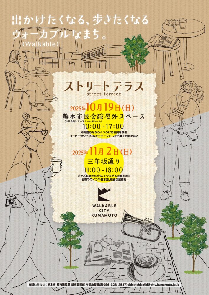 カリーノ下通前三年坂通りにて「ストリートテラス」を開催。ジャズを聴きながら、くつろげる空間を演出します。