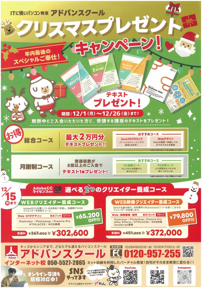 アドバンスクール クリスマスプレゼントキャンペーン(~12/26)