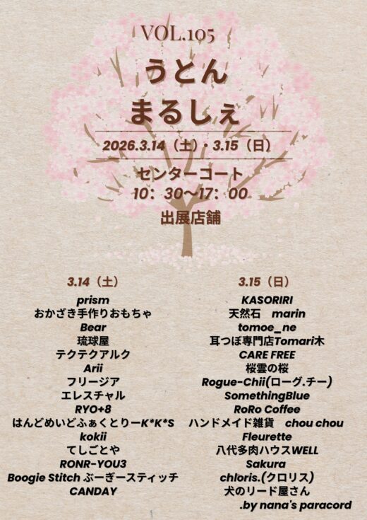 宇土シティモールにて『ハンドメイド&クラフトカフェうとんまるしぇ Vol105』を開催いたします!🍀